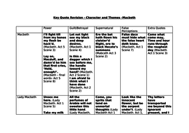 Macbeth Revision Characters And Themes Key Quotations Bank